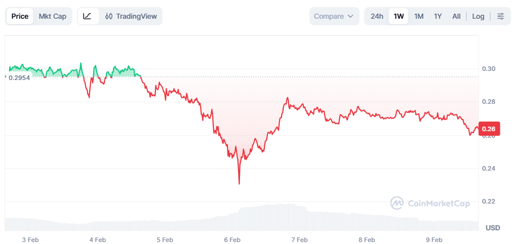 A decisive break below $0,226 would expose the next psychological zone near $0,20, where buyers may attempt to re-enter.