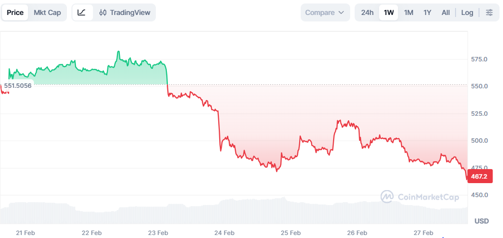 A successful hold above $466 could allow for short-term stabilization and a relief rally.