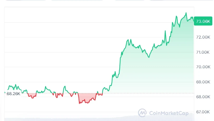 At the time of writing, BTC is trading at $73,063, with a 24-hour trading volume of $110.97 billion and a total market capitalization of $1.47 trillion, according to data from CoinMarketCap. The BTC has increased 7.29% over the last 24 hours, reflecting renewed interest across the broader crypto market.