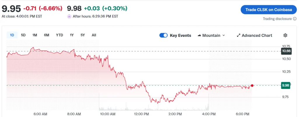 As of writing, shares of CleanSpark are down by around 6.66% on the day of the update, according to Yahoo Finance data. The CoinShares Bitcoin Mining ETF has also experienced a decline, falling by 4.73% in the same period.