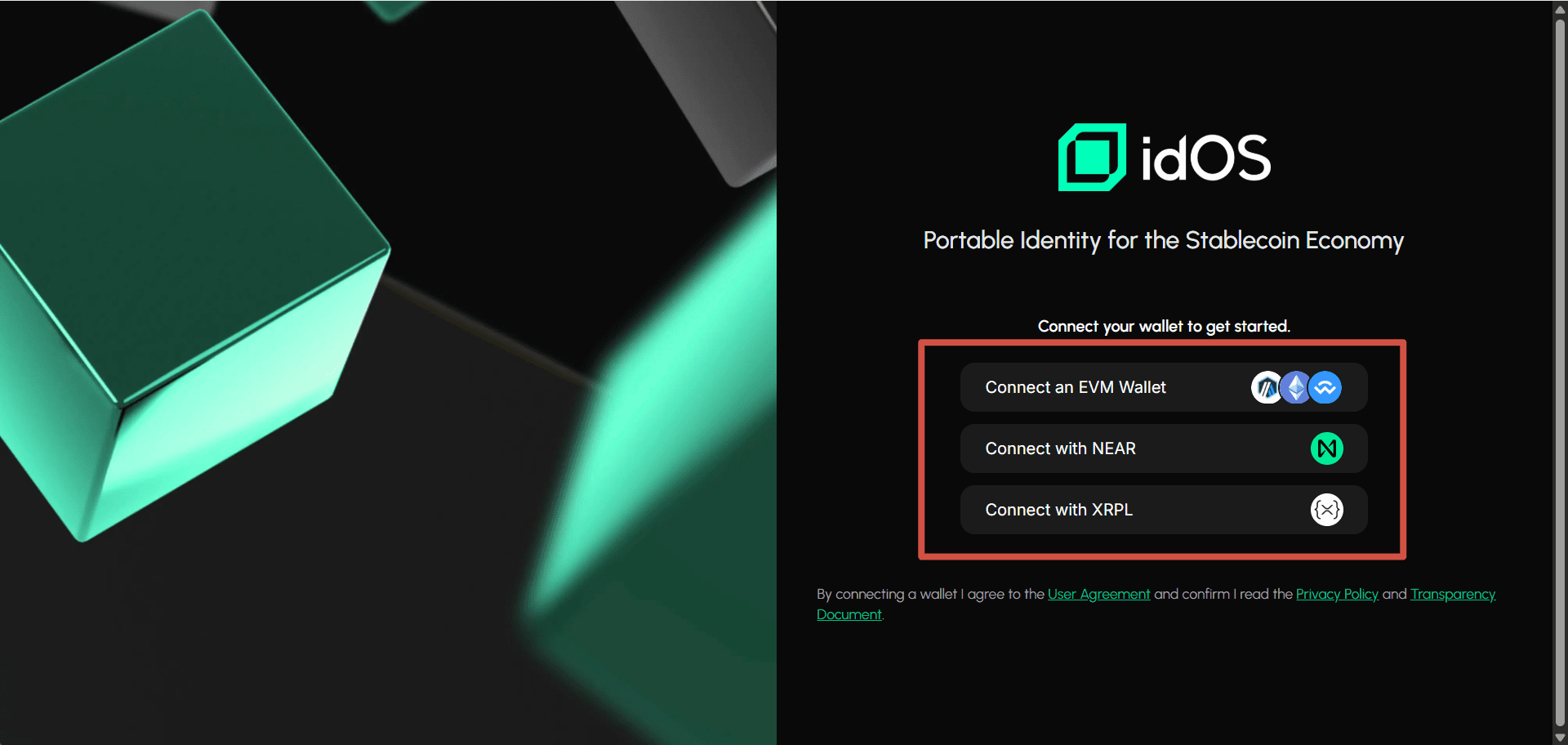 The app supports EVM-compatible, NEAR, and XRPL wallets. Users must link their wallet to qualify for idOS Airdrop rewards and future incentives.