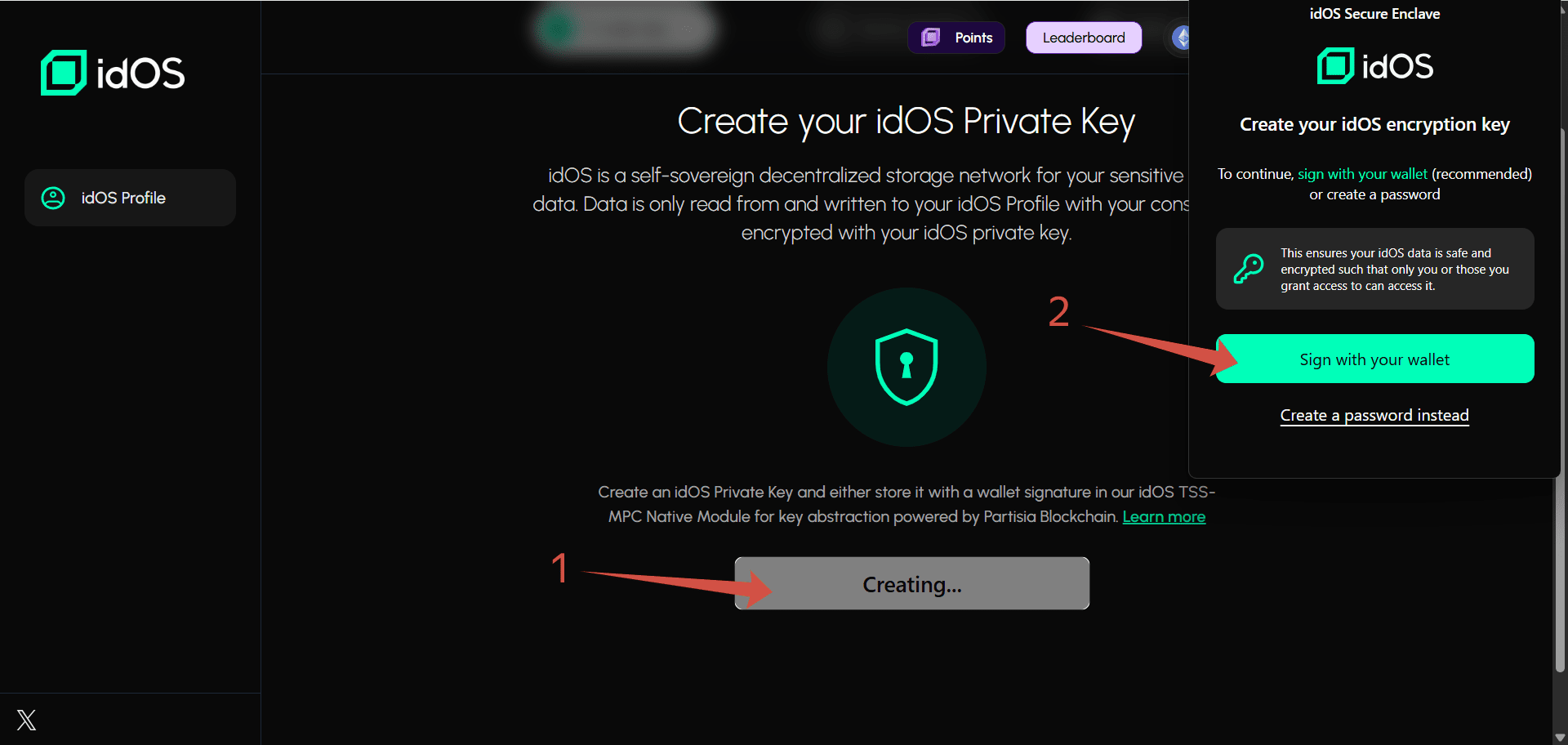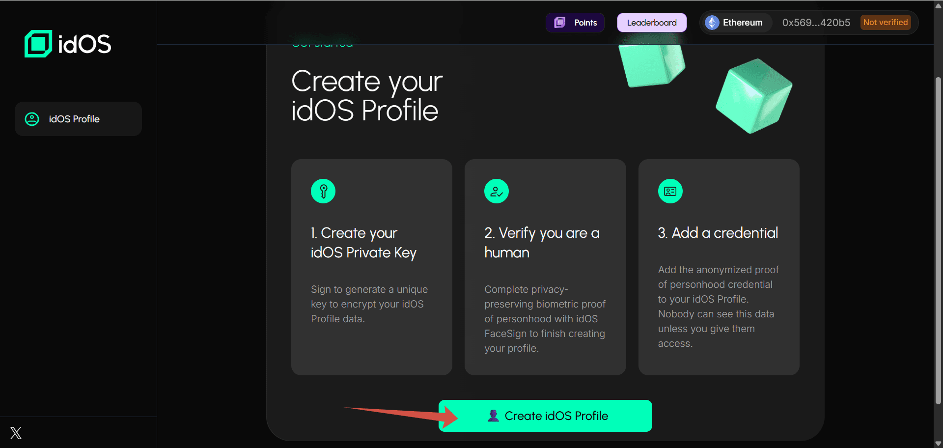 Joining the idOS Airdrop starts with creating an idOS Profile. Follow these steps to begin: