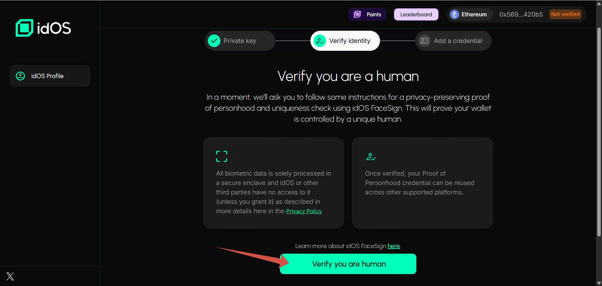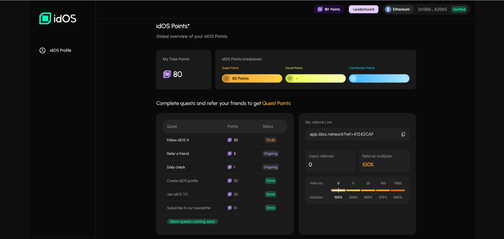Once users complete these steps, they can check their Leaderboard position and start earning points toward idOS Airdrop rewards.
