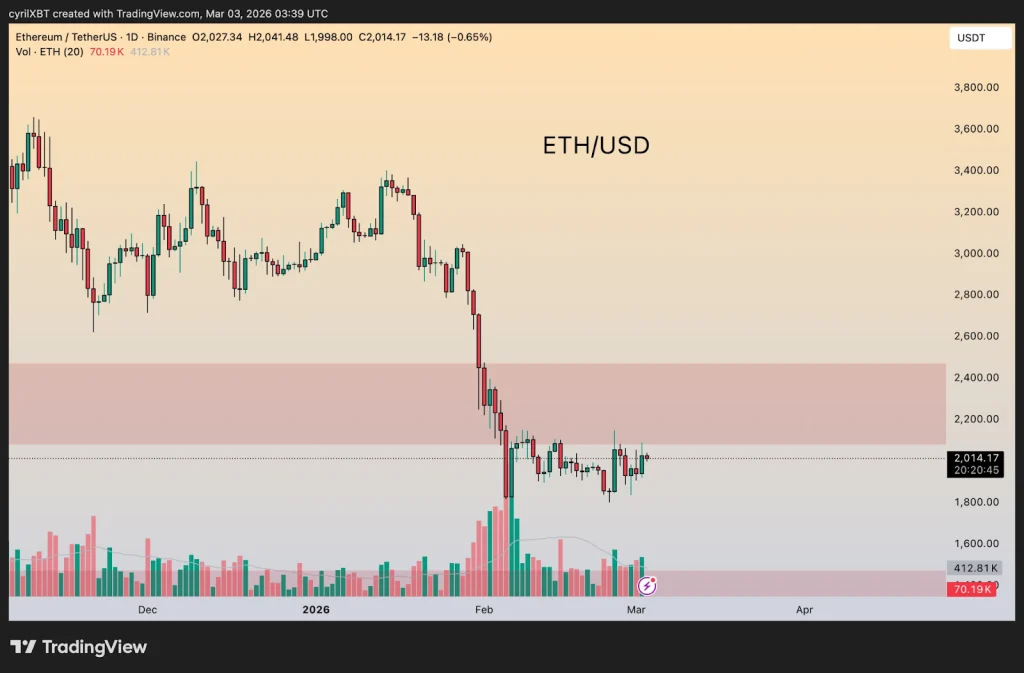 ETH Consolidates Around $2,000 After Sharp Sell-Off