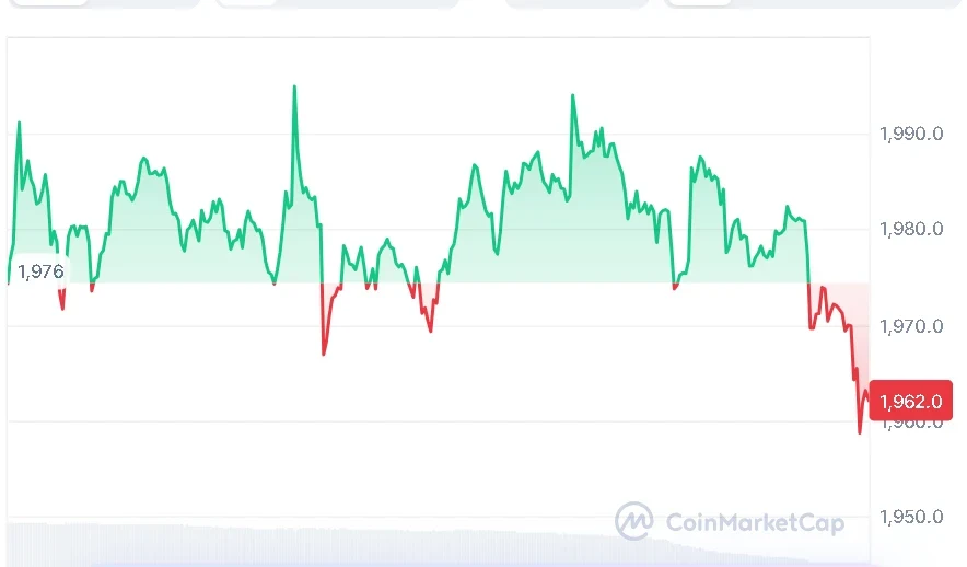 At the time of writing, Ethereum (ETH) is trading at $1,962. ETH has a trading volume of $15.57 billion in the last 24 hours and a market capitalization of $237.97 billion, according to  CoinMarketCap data. ETH has declined by 1.10% over the last 24 hours as it consolidates after the latest price volatility.