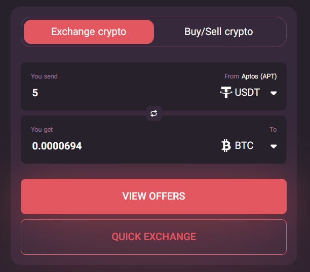 SwapSpace is a crypto exchange aggregator that compares swap offers from 37 trusted exchange partners. It supports nearly 4,000 cryptocurrencies, including BTC and USDT, and focuses on fast, non-custodial exchanges.