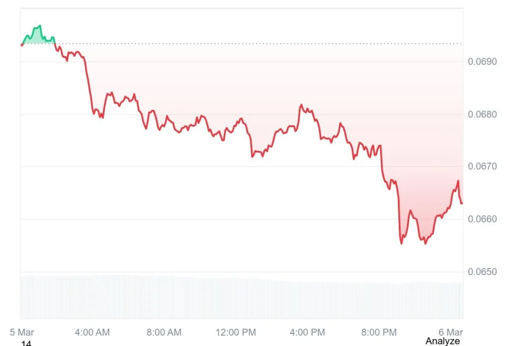 IOTA is currently trading at $0.06629, down 4.63% over the past 24 hours, with trading volume falling 18.39% to $11.7 million, according to market data from CoinMarketCap. Over the past seven days, the asset has declined 4.89%, placing it close to levels where technical analysts believe a potential rebound could emerge.