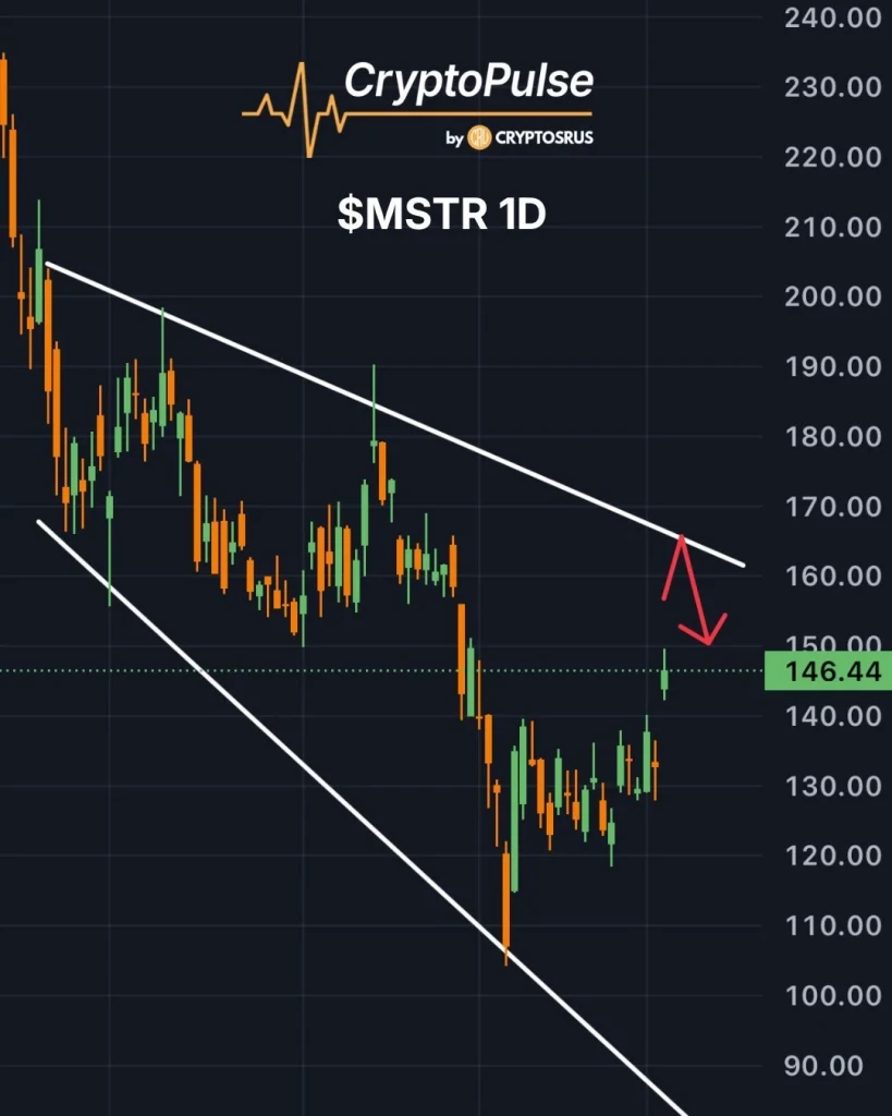 According to a recent post by a crypto analyst on CryptoPulse, MicroStrategy is trading in a descending broadening wedge formation on its daily chart, and the key level to watch is near $160, where the upper resistance level is located in the wedge formation.