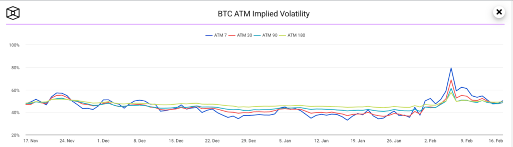 Funding rates moved into negative territory over the weekend, and near-term implied volatility declined, indicating that options traders were reducing expectations of immediate downside. This marked one of the first clear improvements in derivatives sentiment in several months.